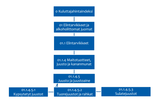 Kuva 1. Esimerkki kuluttajahintaindeksin rakenteesta ja alaindekseistä.