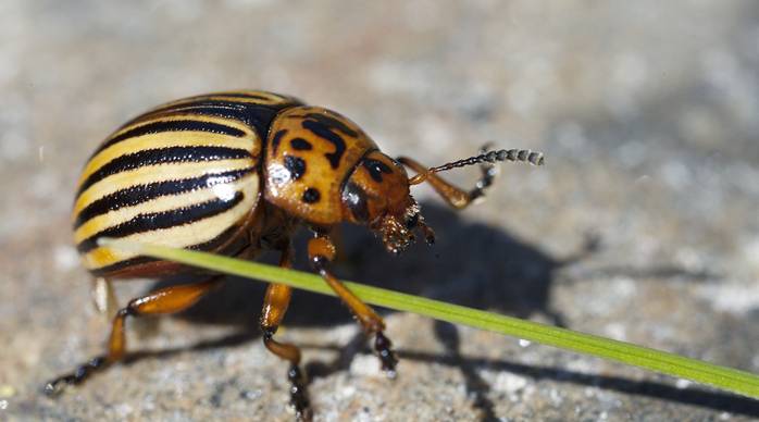 Aikuinen koloradonkuoriainen. Kuva: Lauri Mäenpää.