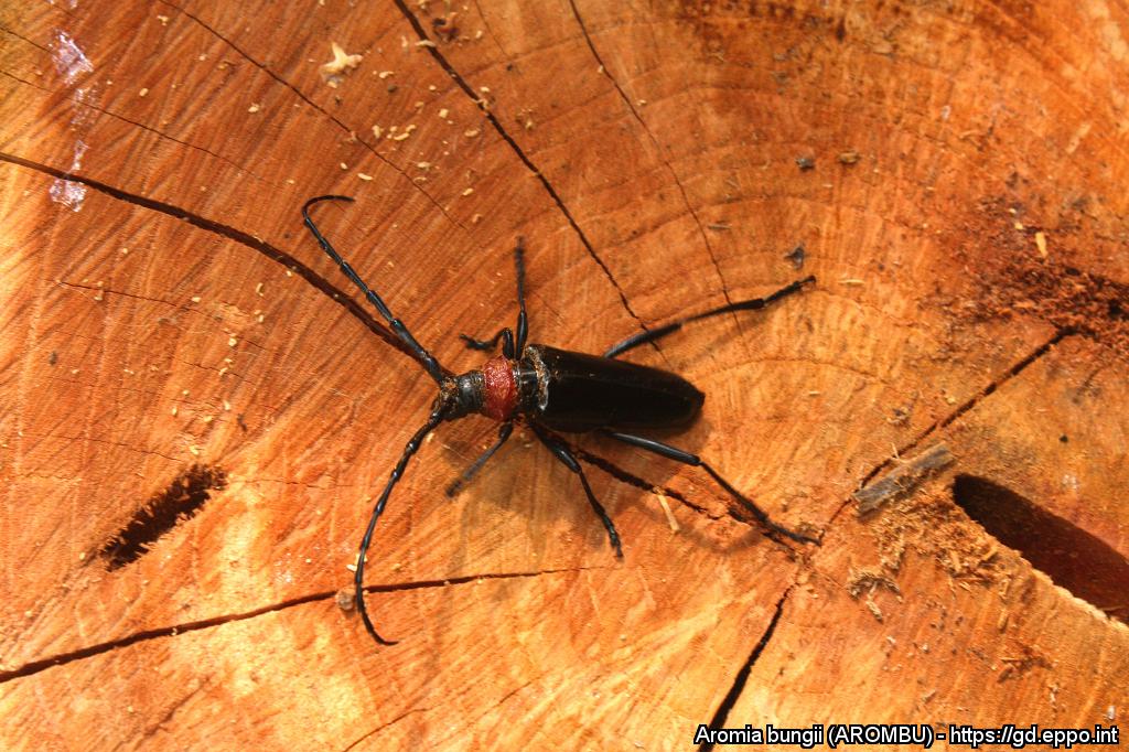 Aikuinen punakaulusjäärä (Aromia bungii). Kuva: Matteo Maspero, Centro MiRT – Fondazione Minoprio (IT)