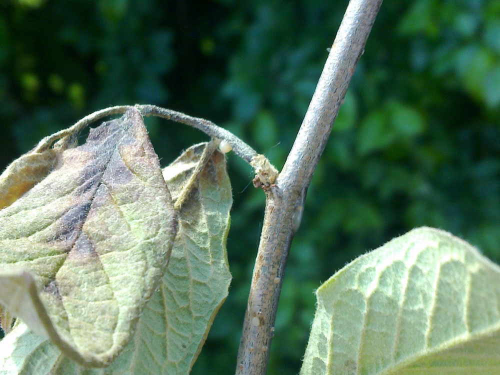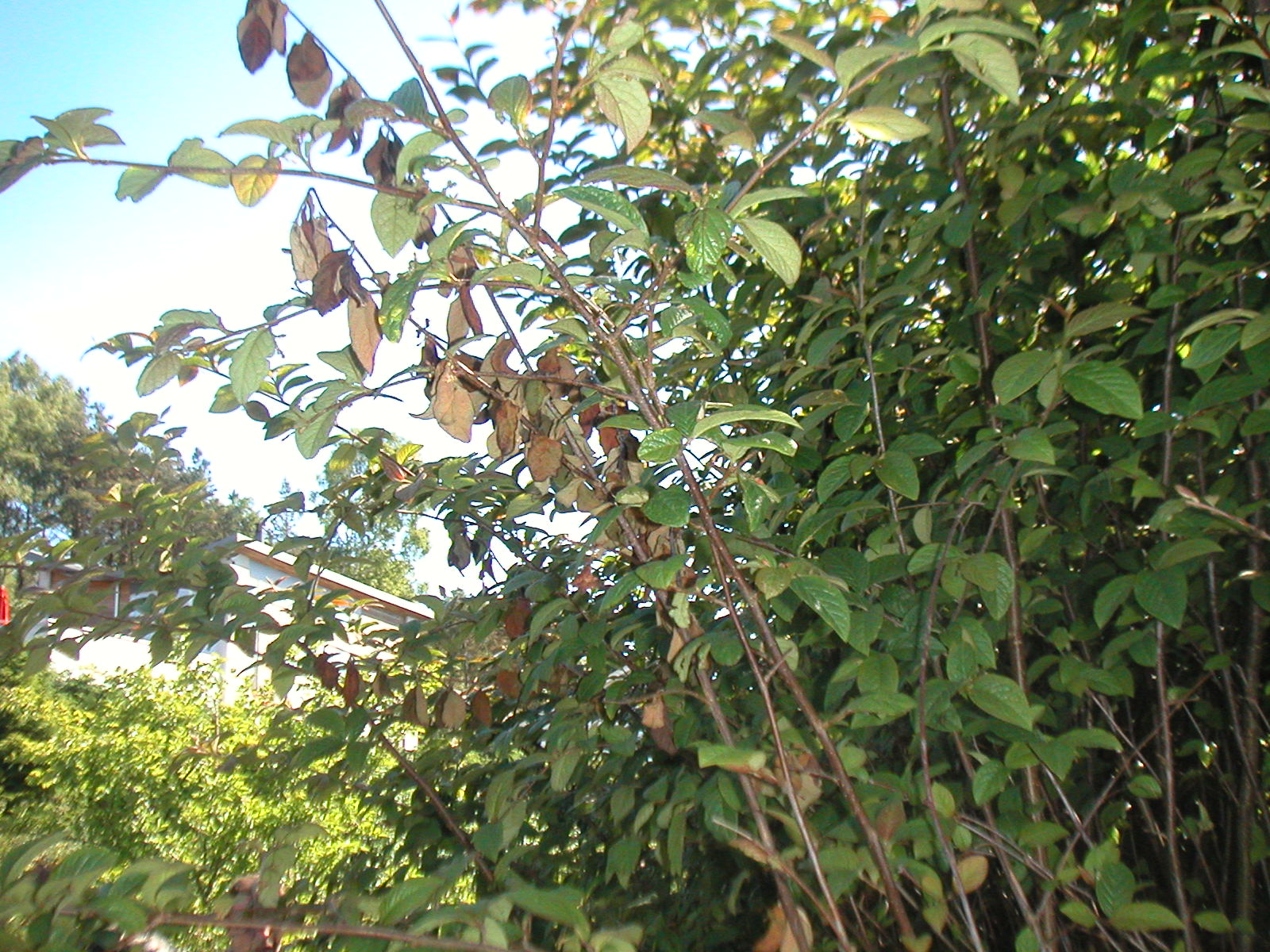 - Kuihtuneet kukinnot, lakastuneet lehdet ja näivettyneet mustuneet hedelmät jäävät kiinni versoihin