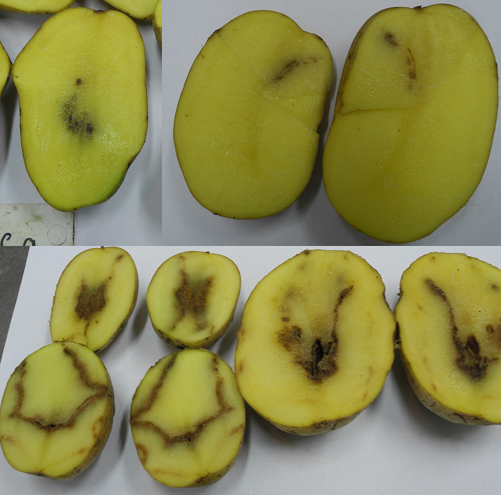 Mukuloissa oireita ei aina näy. Joissain tapauksissa mukuloiden pinnalla näkyy pinnallisia samankeskisiä renkaita. Myös tummat, nekroottiset, kaarimaiset kuviot mukulassa ovat mahdollisia. Mukulaoireet eivät välttämättä ole nähtävissä sadonkorjuuvaiheessa, mutta ne voivat kehittyä varastoinnin aikana, etenkin jos ne altistuvat lämpötilojen vaihtelulle.