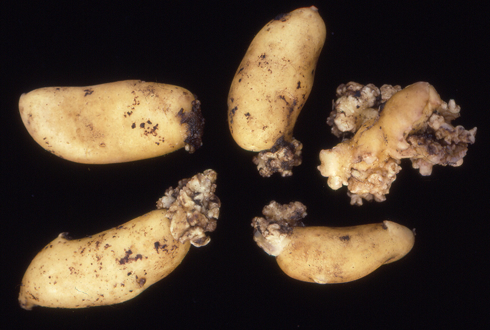 Perunasyövän oireena mukuloihin kasvaa kukkakaalimaisia kasvannaisia (kuva Asko Hannukkala).