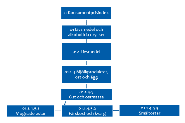 Bild 1. Exempel på konsumentprisindexets uppbyggnad och underindex.