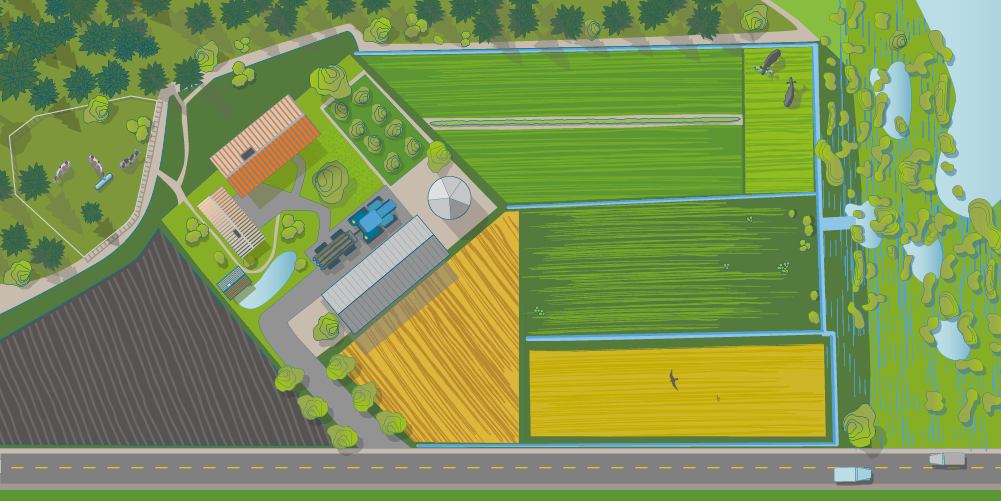 Planera och samla in erfarenheter kring din egen gårds möjligheter att främja den biologiska mångfalden. Vid planeringen ska du beakta de vardagliga sysslorna på din gård, dina egna resurser och också fundera på hur du kan samarbeta med andra gårdar. Med en bra planering kan du förbättra miljöns tillstånd och samtidigt göra produktionen på din gård mer effektiv. Undersök din gårds omgivning både i terrängen och på kartan så att du upptäcker gårdens mångfaldsobjekt. Du kan också låta göra upp en miljöplan för din gård med bistånd av en rådgivare som är insatt i mångfaldsfrågor. Leta fram en lämplig rådgivare i Rådgivarregistret: https://tilaneuvojat.ruokavirasto.fi/#/f