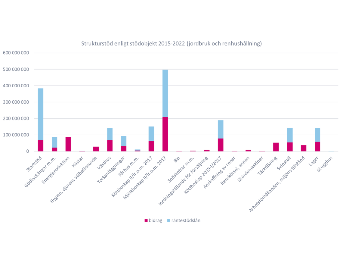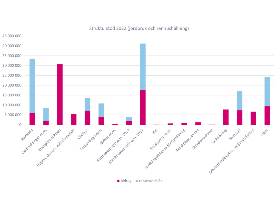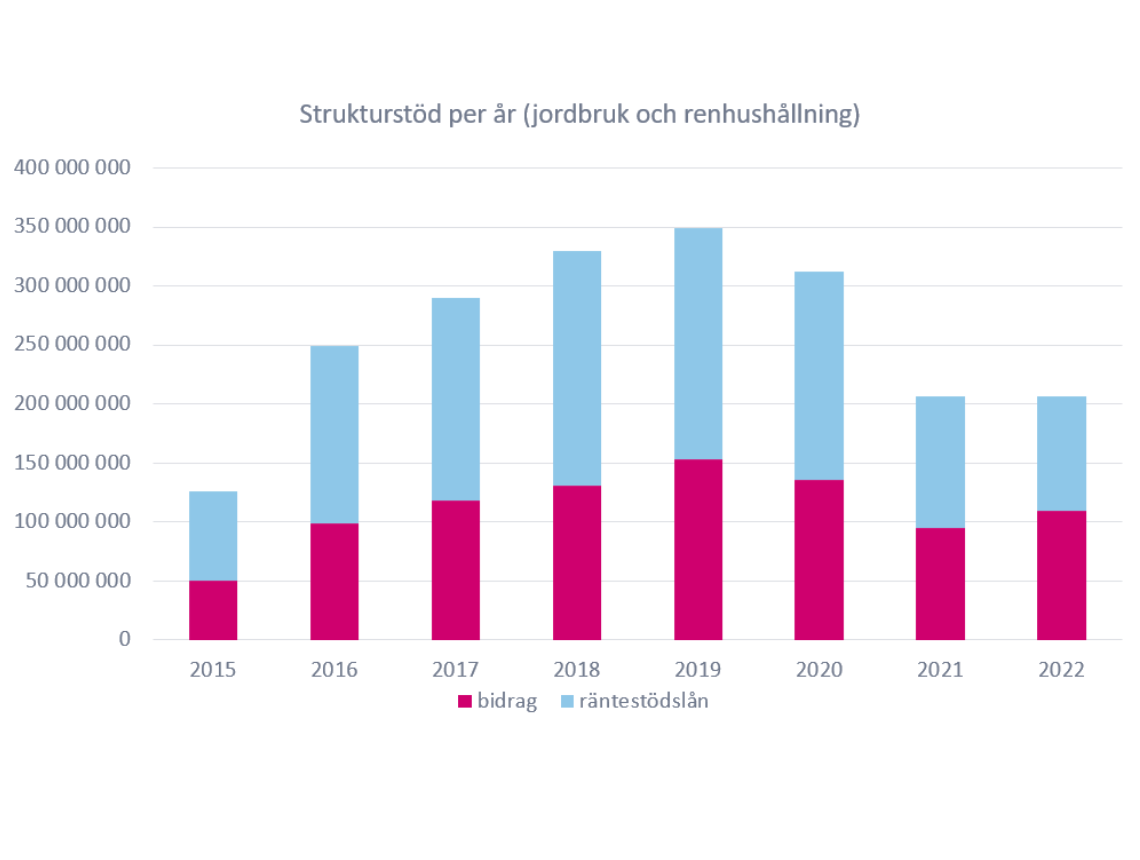 Tabell: Strukturstöd enligt stödobjekt 2022, strukturstöd enligt stödobjekt 2015–2022, antal strukturstöd 2015–2022 (pdf)