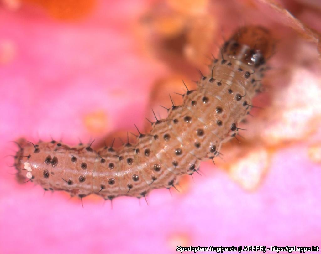 En larv av Spodoptera frugiperda. Foto: Marja van der Straten, National Plant Protection Organisation, the Netherlands / EPPO.