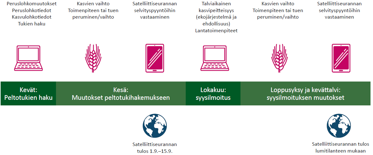Jokaisen EU:n jäsenmaan pitää ottaa käyttöön tukiehtojen satelliittipohjainen seurantajärjestelmä. Satelliittien tuottaman aineiston avulla kasvuston kehittymistä seurataan koko kasvukauden ajan. Aineisto on kaikille avointa ja ilmaista. Tutuksi tulleen Vipu-palvelun lisäksi tulee käyttöön mobiilisovellus.
